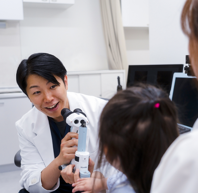 当院では、お子様の目の診療についても力をいれており、視能訓練士が常駐しています。お子様のに対する視機能検査や矯正訓練指導など専門的な知識と技術を持ったエキスパートが行います。